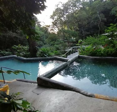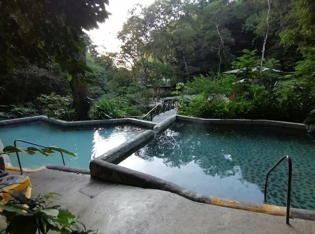 Finally, reach our natural hot water pools for a beauty and relaxation treatment, volcanic mud exfoliation optional and a Natural Sauna.