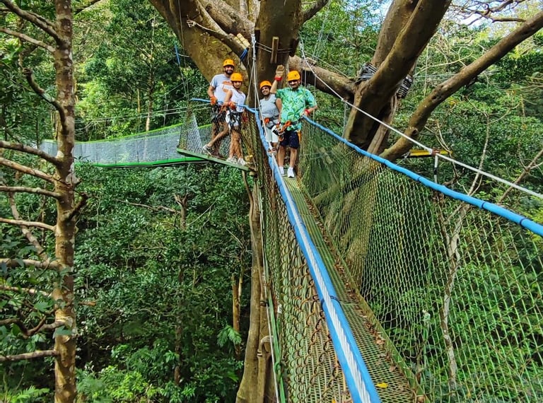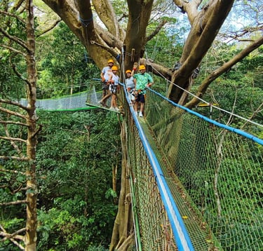 16 continuous hanging bridges, located in towering ancient trees, crisscross the jungle and offer a bird's-eye view of the forest and a closer look at the surrounding wildlife.